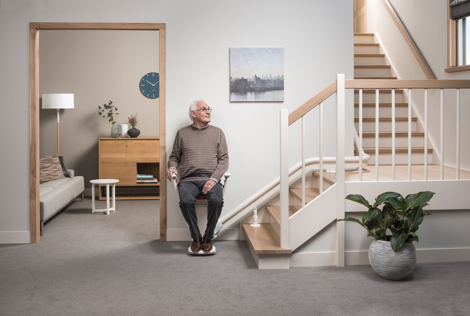 La silla salvaescaleras modelo MEDAS se adapta perfectamente a las escaleras más complicadas, otorgando alto nivel de confort. Su diseño cuidado y múltiples opciones de acabado en asiento y guías permiten su integración en cualquier ambiente. Su funcionamiento es fácil y el manejo muy ergonómico gracias a la opción de giro automático del asiento y el plegado automático del reposapiés.